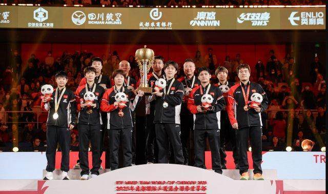北京时间12月7日,在2025年国际乒联混合团体世界杯决赛中,中国乒乓球队以8比1战胜日本队,实现三连冠。其中王楚钦/孙颖莎3比0松岛辉空/大藤沙月、王曼昱3比0张本美和、林诗栋2比1张本智和。
